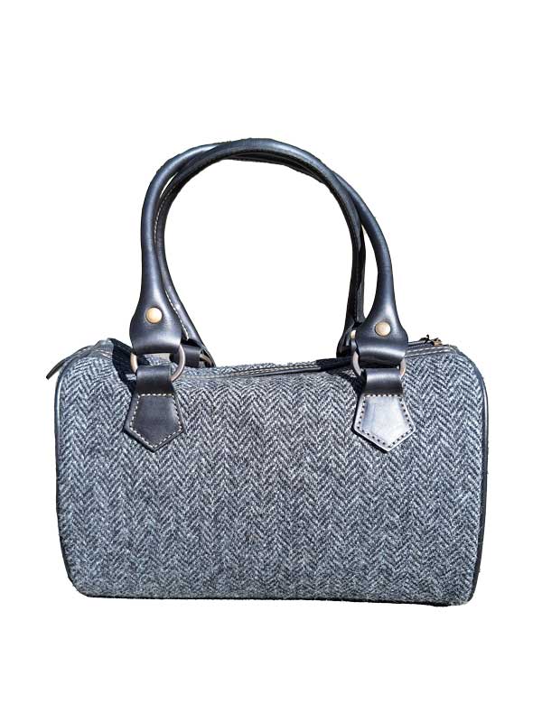 Harris Tweed Barrel Bag Charcoal Herringbone