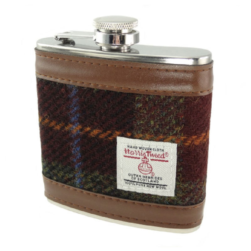 Harris Tweed 6oz Hip Flask Rust Check