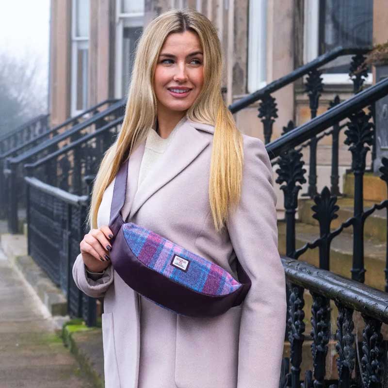 Harris Tweed Sling Bag In Turquoise Herringbone