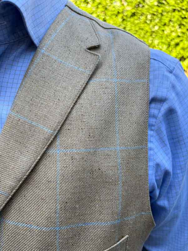 Zijden Vestje Wales Met Revers In Blue With A Subtle Overcheck
