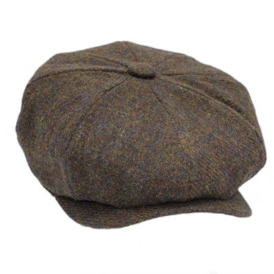 Traditional Newsboy 8-Piece Cap made from Genuine Harris Tweed with central button. ”Peaky Blinders” Style. This panelled Harris Cap is a deeper fit than the Arran and boasts an elongated peak. Quilted satin lining. The peak is fully stitch attached, preventing the cap being worn with the upper portion detached this ensures the shape is maintained over time.
