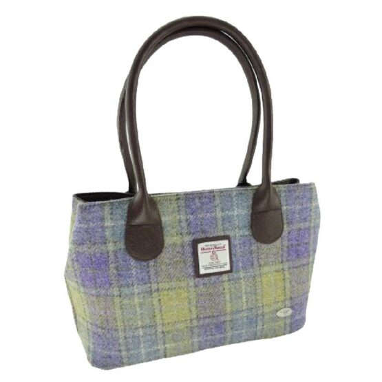 Harris Tweed ‘Cassley’ Classic Handbag in Muted Lilac / Lime Green Tartan