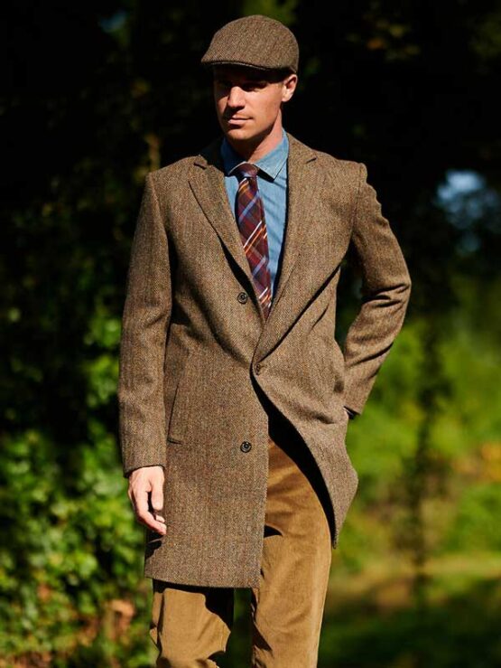 Traditie en innovatie komen samen in deze heren tweedjas, “Barney”, gemaakt van echte Harris Tweed. Een perfect voorbeeld van een moderne wollen jas met reverskraag, gecombineerd met een tweed die al tientallen jaren zijn waarde heeft bewezen. Deze herenjas is zowel geschikt voor zakelijke kleding als voor een stijlvolle avondoutfit. Hij heeft een knoopsluiting aan de voorkant en comfortabele paspelzakken. Een korte split aan de achterkant zorgt voor comfortabele bewegingsvrijheid. De met de hand genaaide knopen van echt hoorn en het gegraveerde logo zijn elegante details. Deze wollen jas overtuigt door zijn hoogwaardige vakmanschap en aandacht voor detail, zoals blijkt uit de onderkraag met contrasterende vilten rand en de gedetailleerde binnenkant. Een must-have voor de stijlvolle heer!