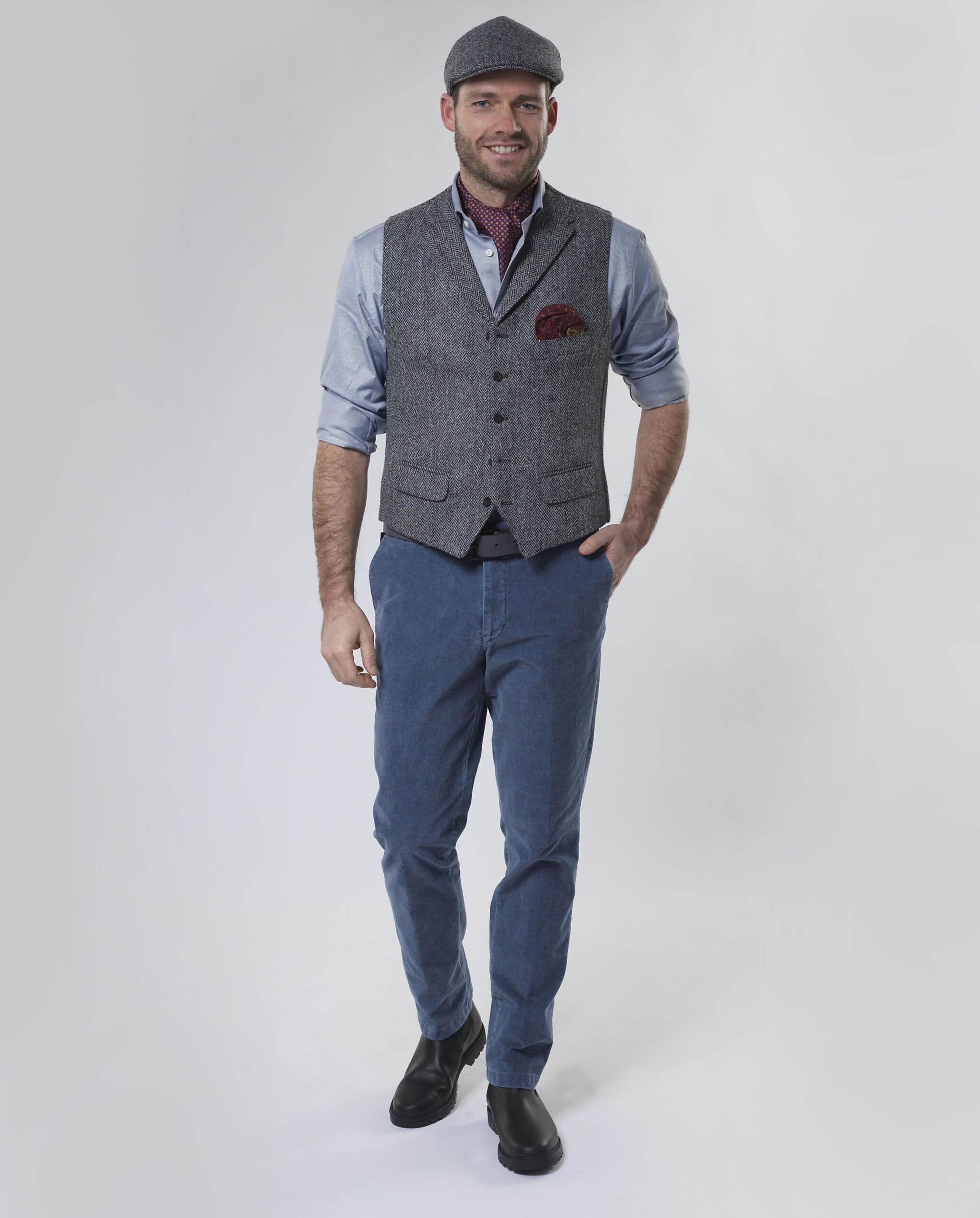 Traditie en innovatie komen samen in deze heren tweedjas, “Barney”, gemaakt van echte Harris Tweed. Een perfect voorbeeld van een moderne wollen jas met reverskraag, gecombineerd met een tweed die al tientallen jaren zijn waarde heeft bewezen. Deze herenjas is zowel geschikt voor zakelijke kleding als voor een stijlvolle avondoutfit. Hij heeft een knoopsluiting aan de voorkant en comfortabele paspelzakken. Een korte split aan de achterkant zorgt voor comfortabele bewegingsvrijheid. De met de hand genaaide knopen van echt hoorn en het gegraveerde logo zijn elegante details. Deze wollen jas overtuigt door zijn hoogwaardige vakmanschap en aandacht voor detail, zoals blijkt uit de onderkraag met contrasterende vilten rand en de gedetailleerde binnenkant. Een must-have voor de stijlvolle heer!