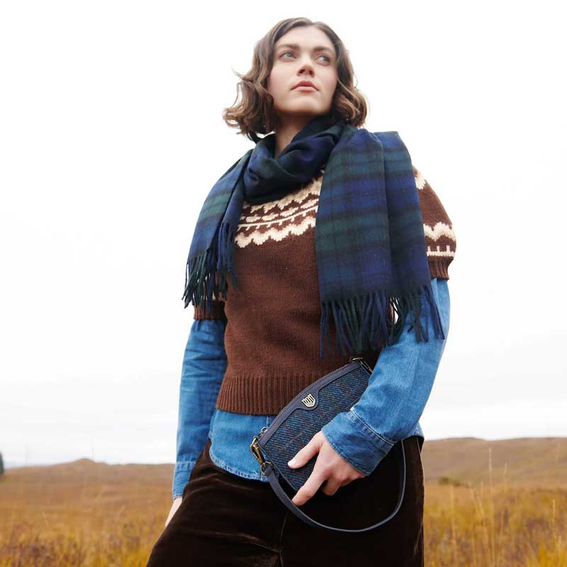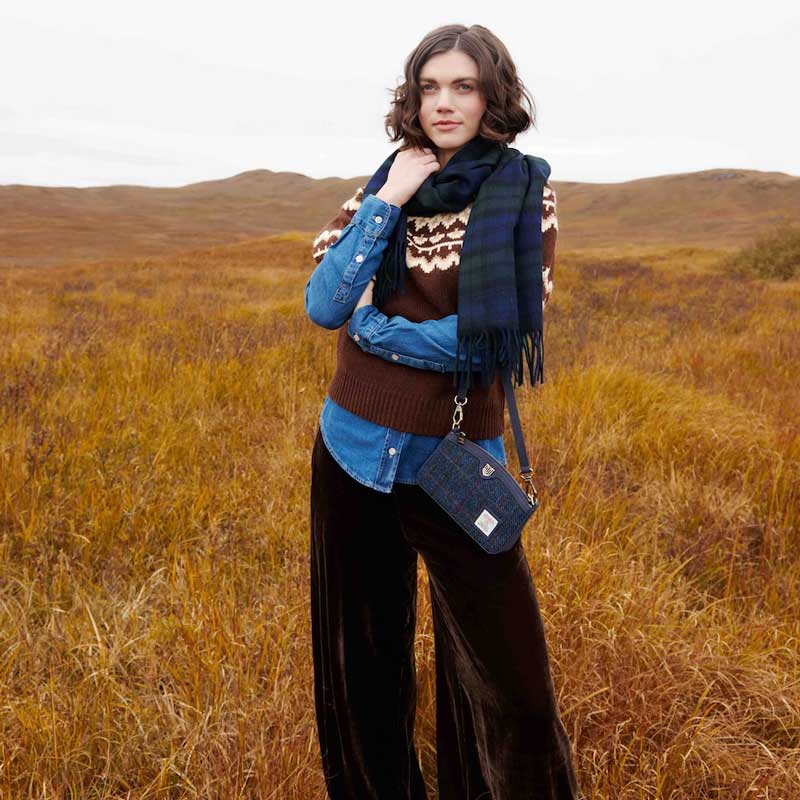 De Ailsa is de perfecte combinatie van elegantie en functionaliteit, ontworpen om uw stijl moeiteloos van overdag naar ’s avonds te tillen. Deze slanke en compacte tas, vervaardigd van hoogwaardig echt leer en authentieke Harris Tweed, biedt ongeëvenaarde kwaliteit en een tijdloze uitstraling.