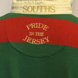 The South Sydney 1970 Polo showcases the iconic green and red hoops, a hallmark of the Rabbitohs’ identity. These bold colors symbolize the passion and dedication of the South Sydney team. Moreover, the retro design pays homage to the classic rugby league jerseys of the era, seamlessly blending nostalgia with modern style.
