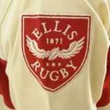 On the back, “TRANSVAAL RUGBY” is stitched in gold, accompanied by the year “1972” on the collar stand. Additionally, the red applique Ellis Rugby crest with white stitching adds a touch of elegance to the sleeve. In addition to these features, the polo includes a woven label near the hem and stylish herringbone side vent trim, reflecting the meticulous attention to detail.