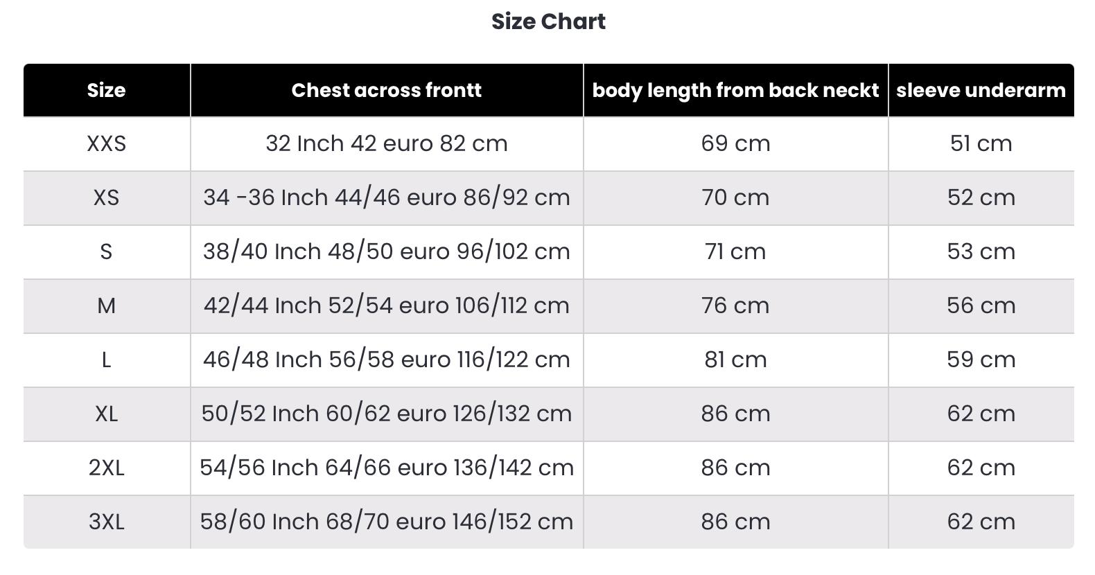 Maat XS, S, M, L, XL, 2XL, 3XL