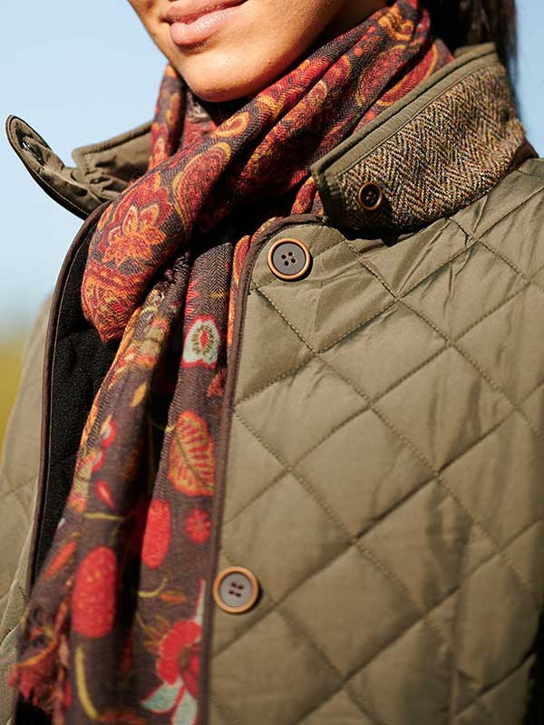 Wellington, Harris Tweed damesjas gesteppt met Polarfleece Olijfgroen