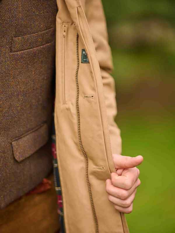 De details zijn rijk aan details en van hoge kwaliteit: een verborgen knoopsluiting, comfortabele schuine zakken, twee ruime binnenzakken met rits en een split in de rug. Kleine, subtiele highlights zijn de afneembare kraag van tabakkleurig lamsnubuckleer, de stormflap met drukknoop en de uitneembare Wellington-ruitvoering. Tijdloos en veelzijdig, te combineren met zowel zakelijke als casual outfits. Of het nu voor een zakelijke afspraak of vrije tijd is, de “Finchester All Season” is meer dan zomaar een jas – het is een trouwe metgezel die je keer op keer zal verrassen met zijn veelzijdigheid en elegantie.