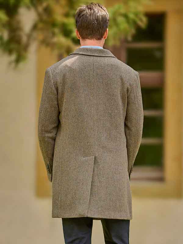 Veste homme “ Boston ” en tweed Harris olive avec détails en tweed Harris