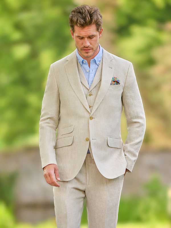 Veste d'été en soie London à chevrons marron et surpiqûres