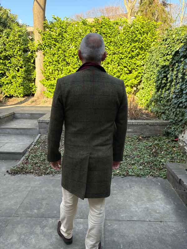 Tradition et innovation se rencontrent dans cette veste en tweed pour homme, “ Barney ”, confectionnée en véritable Harris Tweed. C'est l'exemple parfait d'un manteau en laine moderne à col à revers, associé à un tweed qui a fait ses preuves depuis des décennies. Cette veste pour homme convient aussi bien aux tenues professionnelles qu'aux tenues de soirée élégantes. Elle est dotée d'une fermeture boutonnée sur le devant et de poches passepoilées confortables. Une courte fente au dos offre une grande liberté de mouvement. Les boutons en corne véritable cousus main et le logo gravé apportent une touche d'élégance. Ce manteau en laine impressionne par sa qualité de fabrication et son souci du détail, comme en témoignent le dessous de col à bordure en feutre contrastante et la doublure soignée. Un incontournable pour l'homme élégant !