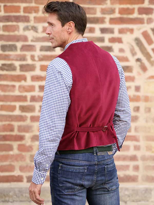 Avec son élégant col à revers et son dos confectionnés dans le même tissu extérieur de haute qualité, ce gilet dégage une élégance intemporelle. Cinq boutons effet corne raffinée, deux poches à rabat classiques, une poche poitrine authentique et une poche intérieure pratique rehaussent son design élégant. Grâce au dos réglable, la coupe est personnalisable, pour une tenue parfaite en toute occasion.