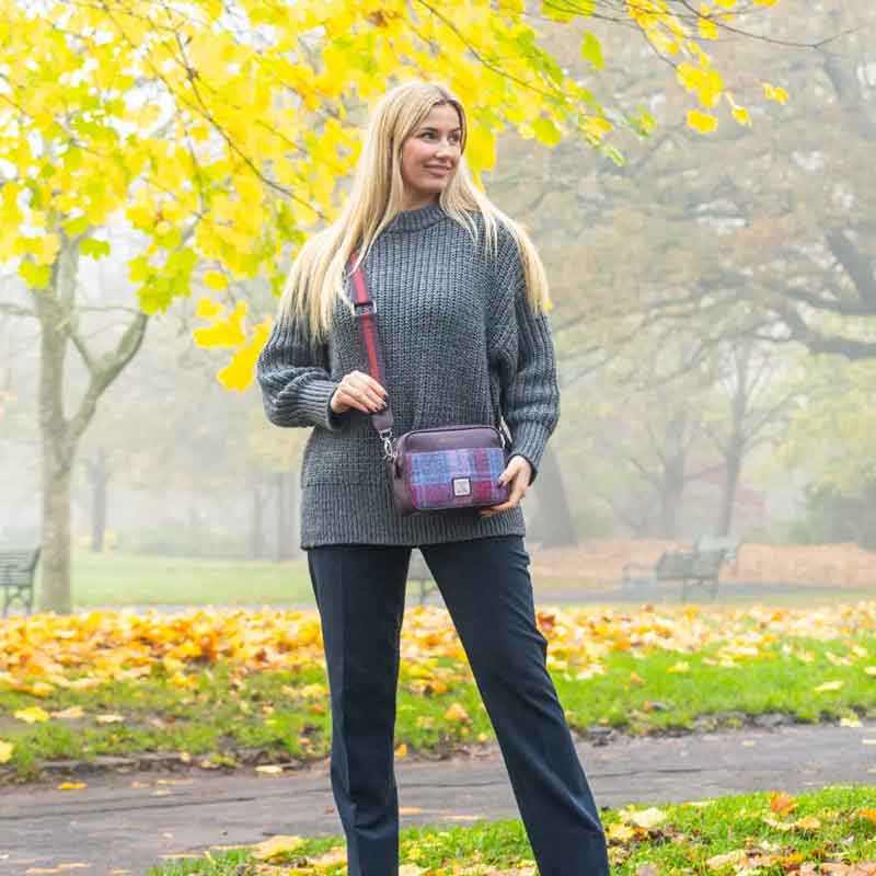 Harris Tweed Camera Bag In Purple Check