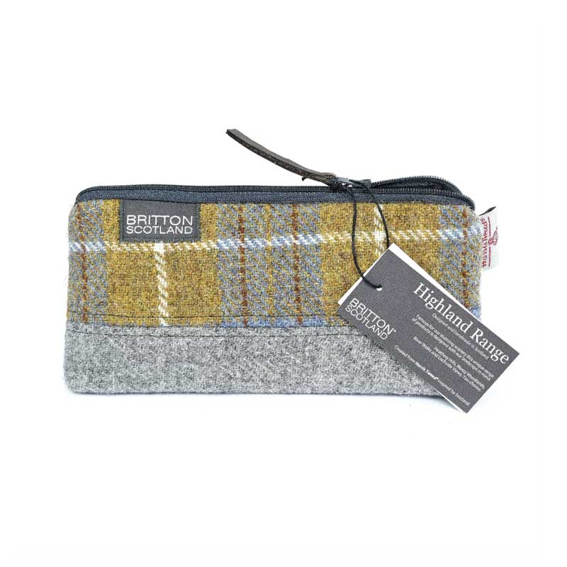 Harris Tweed Highland Range Cosmetic Bag Mustard Plaid