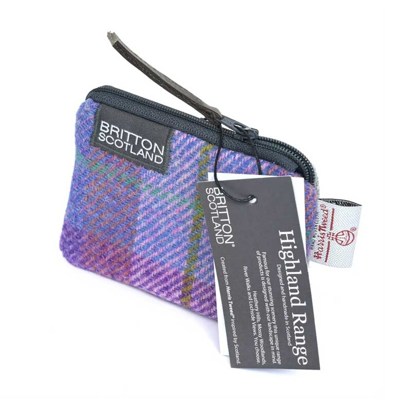 Harris Tweed Highland Card Purse Purple Multi Plaid