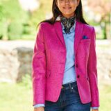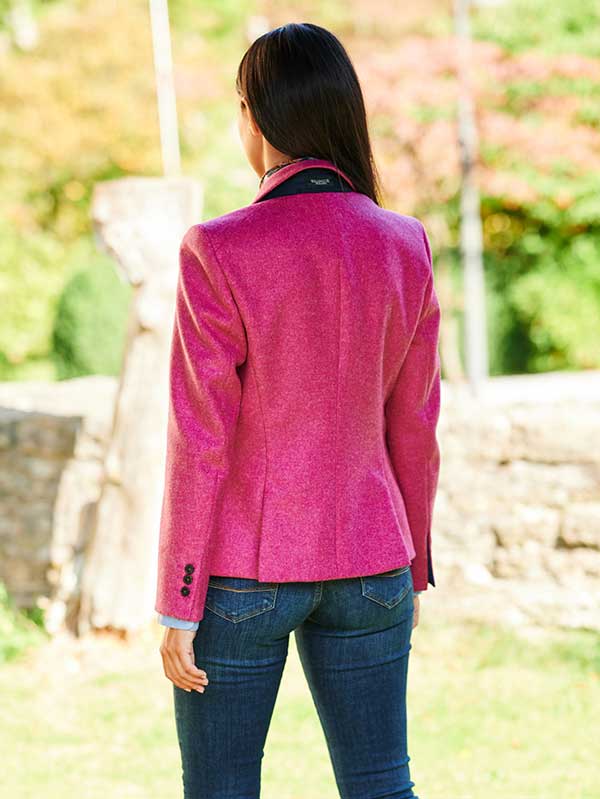 Traditie en innovatie komen samen in dit elegante Harris Tweed-blazer “Carola”. De geselecteerde, bijzonder slijtvaste wolkwaliteit is handgeweven en komt uit de Buiten-Hebriden van Schotland. Het is aangenaam warm en heeft een elegante uitstraling. De 3-knoopsblazer in een vrouwelijk, op maat gemaakt model heeft een moderne snit en overtuigt door een uitstekende afwerking. Voorzien van een reverskraag, twee klepzakken, een ticketzakje, een borstzakje en twee zijsplitten aan de achterkant. Liefdevolle details zijn te zien aan de met wollen fleece gevoerde onderkraag en de knopen in hoornlook. Klassiek, tijdloos en toch modern: dit prachtige jasje kan stijlvol worden gecombineerd met vesten, rokken, casual jeans en wollen broeken. Het ingenaaide echtheidscertificaat van de HARRIS TWEED Authority garandeert deze unieke kwaliteit.
